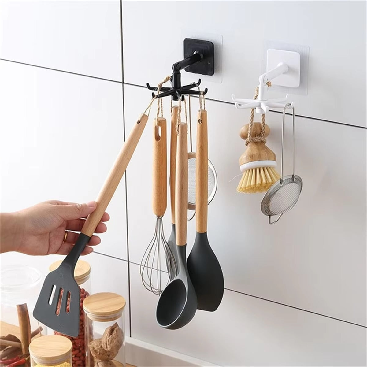Built for long-term service, these rotatable kitchen utensil hooks take the lead in the hall of durability. The ABS material, which is tough beyond definition, represents the hook's long lifespan. A rough adhesive patch holds the hook in place without damaging your wall. The rotatable mechanism keeps convenience on the agenda.