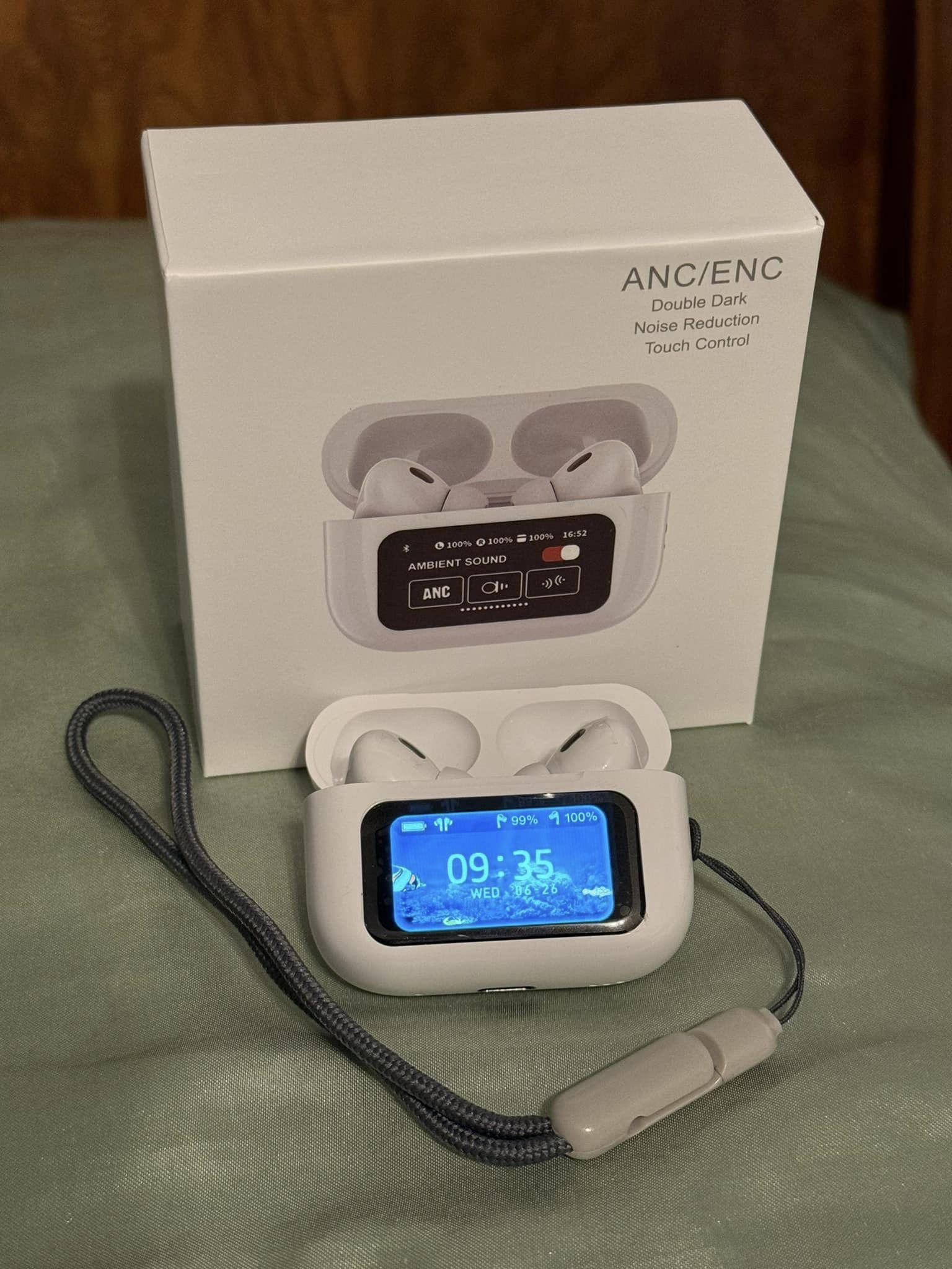 Introducing the A9 Pro Touch Screen AirPods_Pro – the latest innovation in Bluetooth earphones wireless technology. Designed for music lovers, gamers, and professionals, these A9 Pro wireless earbuds deliver immersive audio, exceptional comfort, and intelligent features all in one sleek package. With fifth-generation ANC+ENC technology, you’ll enjoy crystal-clear sound with zero distractions.